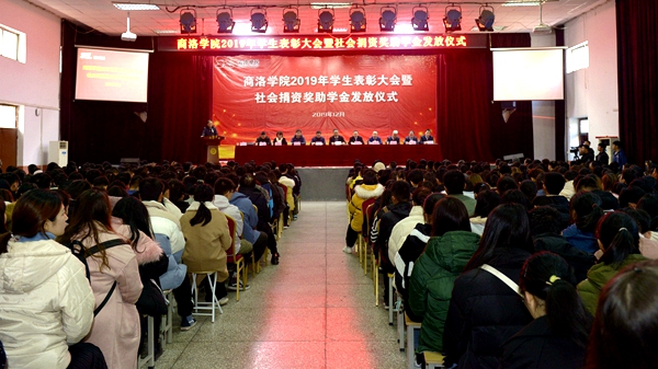 12月11日,我校2019年學生表彰大會暨社會捐資獎助學金發(fā)放儀式在大學生活動中心隆重舉行。黨委書記龍治剛,黨委副書記彭虎軍,國網商洛供電公司黨委書記王戰(zhàn)、中國電信商洛分公司總經理范圳、廣東校友會正德篤行基金會理事賀濤等8家社會捐資企業(yè)及捐資個人代表出席大會。大會由學生處處長石啟英主持。