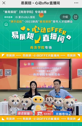 為充分搶抓畢業(yè)生求職關(guān)鍵期,鞏固“訪企拓崗”促就業(yè)專項(xiàng)行動(dòng)成果,5月10日下午,共青團(tuán)陜西省委、陜西省青年就業(yè)創(chuàng)業(yè)服務(wù)指導(dǎo)中心與我校聯(lián)合舉辦2022年陜西省青年人才招聘會(huì)暨“千校萬崗·就業(yè)有位來”—商洛學(xué)院專場雙選會(huì)。學(xué)生處負(fù)責(zé)人及有關(guān)工作人員參加了直播帶崗位現(xiàn)場活動(dòng)。