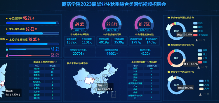 本次網(wǎng)絡(luò)視頻招聘會共有省內(nèi)外320余家用人單位報名參會,提供涉及制造業(yè)、建筑業(yè)、房地產(chǎn)業(yè)、教育、文化體育和娛樂業(yè)、信息傳輸軟件和信息技術(shù)服務(wù)業(yè)、科學(xué)研究和技術(shù)服務(wù)業(yè)等10大行業(yè)領(lǐng)域的對口、優(yōu)質(zhì)就業(yè)崗位6200余個。共吸引1589余名校內(nèi)外畢業(yè)生參會,在線訪問量達(dá)到44901人(次),畢業(yè)生累計投遞簡歷4019份。