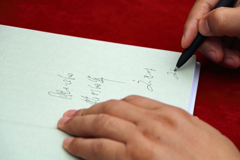 在莘子苑入口,畢業(yè)生排隊(duì)熱烈歡迎劉建林校長。劉建林現(xiàn)場向畢業(yè)生贈(zèng)送了自己編著的《跨流域調(diào)水工程補(bǔ)償機(jī)制研究——以南水北調(diào)(中線)工程商洛水源為例》一書,并在書上題寫了“膽大心細(xì),精打細(xì)算”的贈(zèng)語及簽名。簽名贈(zèng)書現(xiàn)場人頭攢動(dòng),畢業(yè)生們圍繞在劉建林身邊,爭先恐后領(lǐng)取贈(zèng)書。拿到劉校長親筆簽名的書籍,同學(xué)們臉上流露出了激動(dòng)和幸福的表情。