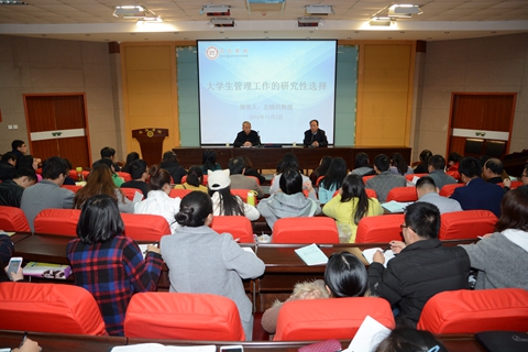 在報(bào)告中,左曉民教授從輔導(dǎo)員工作質(zhì)量及職業(yè)素養(yǎng)出發(fā),“以問題為導(dǎo)向”,對(duì)大學(xué)生管理工作的研究性選擇問題進(jìn)行了深入分析和專業(yè)指導(dǎo)。他指出,目前學(xué)生工作平臺(tái)越來越多,機(jī)遇越來越多,需要輔導(dǎo)員具備越來越強(qiáng)的工作能力;廣大輔導(dǎo)員應(yīng)將視點(diǎn)聚焦于大學(xué)生管理中,鎖定自己的職業(yè)生涯,經(jīng)常進(jìn)行理性反思,將專業(yè)優(yōu)勢(shì)轉(zhuǎn)化為職業(yè)優(yōu)勢(shì),助推學(xué)生成長(zhǎng)。