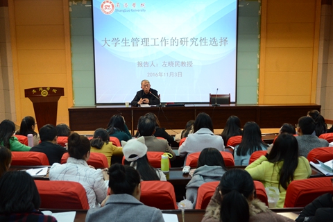 為進(jìn)一步提高我校輔導(dǎo)員職業(yè)能力,提升輔導(dǎo)員專業(yè)化、職業(yè)化水平,11月3日,學(xué)工部召開了輔導(dǎo)員專題培訓(xùn)會(huì),邀請(qǐng)我校教學(xué)督導(dǎo)組組長(zhǎng)左曉民教授為輔導(dǎo)員們做了題為《大學(xué)生管理工作的研究性選擇》的專題報(bào)告。我校全體輔導(dǎo)員和商洛職業(yè)技術(shù)學(xué)院輔導(dǎo)員聽取了報(bào)告。報(bào)告會(huì)由學(xué)工部部長(zhǎng)石啟英主持。