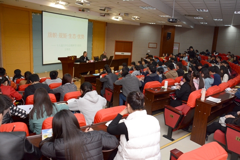 為深入學(xué)習(xí)和理解黨的十八屆六中全會(huì)精神,11月14日,左曉民教授應(yīng)邀來(lái)到“青年大講堂”,以《旗幟·規(guī)矩·生態(tài)·優(yōu)勢(shì)》為題,為我校青年學(xué)生作了十八屆六中全會(huì)精神學(xué)習(xí)報(bào)告。紀(jì)委書記王思懷出席報(bào)告會(huì)。校團(tuán)委、各二級(jí)學(xué)院黨總支、各團(tuán)總支負(fù)責(zé)人參加報(bào)告會(huì)?!扒囫R工程”全體學(xué)員、學(xué)生會(huì)主要干部聽(tīng)取了報(bào)告。報(bào)告會(huì)由團(tuán)委書記蔣正治主持。