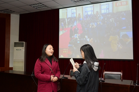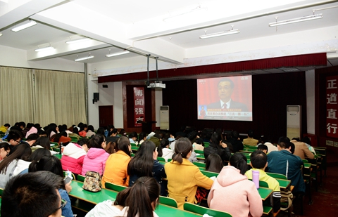 3月3日和3月5日,政協(xié)第十二屆全國(guó)委員會(huì)第五次會(huì)議、十二屆全國(guó)人大五次會(huì)議分別在北京人民大會(huì)堂開(kāi)幕。我校組織師生在報(bào)告廳集中收看了開(kāi)幕式實(shí)況直播,師生們分別通過(guò)手機(jī)、網(wǎng)絡(luò)、電視、廣播等媒體積極收看收聽(tīng),對(duì)兩會(huì)精神、熱點(diǎn)話(huà)題進(jìn)行了學(xué)習(xí)討論。