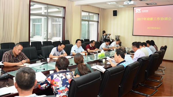 2017年我校面向28個(gè)?。ㄊ?、自治區(qū))錄取新生3302人,根據(jù)學(xué)校安排,新生將于9月4日至5日來(lái)校報(bào)到。為切實(shí)做好新生入學(xué)接待工作,8月28日下午,學(xué)校召開(kāi)2017年迎新工作協(xié)調(diào)會(huì)。黨委副書(shū)記、2017年迎新工作領(lǐng)導(dǎo)小組組長(zhǎng)彭虎軍出席會(huì)議并講話。迎新工作領(lǐng)導(dǎo)小組成員參加會(huì)議。