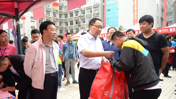 “你們辛苦了,感謝你們!”在奔忙的學(xué)生志愿服務(wù)點(diǎn)前,校領(lǐng)導(dǎo)為志愿者熱情投身迎新志愿服務(wù)工作點(diǎn)贊。在新生報(bào)到點(diǎn),校領(lǐng)導(dǎo)為家庭經(jīng)濟(jì)困難學(xué)生發(fā)放愛(ài)心禮包,與遠(yuǎn)道而來(lái)的新生及家長(zhǎng)親切交談,問(wèn)詢他們的報(bào)到情況,并向他們介紹商洛的歷史人文、自然風(fēng)光和我校的辦學(xué)特色。