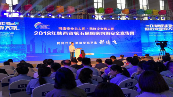 我校100余名師生參加開幕式,電信學(xué)院學(xué)生邢逸飛作為全省唯一的網(wǎng)民代表在開幕式上發(fā)言。邢逸飛說,自己是商洛學(xué)院的一名網(wǎng)絡(luò)評論員、學(xué)生記者,因為經(jīng)常性參加學(xué)校組織的培訓(xùn)交流活動,所以對網(wǎng)絡(luò)宣傳和輿論引導(dǎo)的重要性有著切身的認識。維護網(wǎng)絡(luò)安全,爭做中國好網(wǎng)民,大學(xué)生要發(fā)揮好“排頭兵”的作用。他在大會上代表大學(xué)生和廣大網(wǎng)民鄭重承諾:一要提高政治站位,積極參加學(xué)校和網(wǎng)信部門舉辦的形式多樣的網(wǎng)絡(luò)安全教育活動,帶頭在校園中宣傳網(wǎng)絡(luò)安全知識,讓“網(wǎng)絡(luò)安全為人民,網(wǎng)絡(luò)安全靠人民”的理念深入人心;二要堅守網(wǎng)絡(luò)理性,明辨慎思,不人云亦云亂跟風(fēng),杜絕形形色色的網(wǎng)絡(luò)誘惑,保持客觀理性地接收信息、傳播信息,要慎重地轉(zhuǎn)發(fā),客觀地進行評論,既不當(dāng)傳謠者,也不做“網(wǎng)絡(luò)暴民”;三要遵守網(wǎng)絡(luò)法規(guī),做網(wǎng)絡(luò)安全法的宣傳者,做網(wǎng)絡(luò)安全法的執(zhí)行者,做網(wǎng)絡(luò)安全法的捍衛(wèi)者,做網(wǎng)絡(luò)安全法的建設(shè)者;四要用網(wǎng)而不沉溺于網(wǎng)絡(luò),用青春傳播正能量,踐行社會主義核心價值觀,把自己鍛造成堪當(dāng)民族復(fù)興大任的時代新人。