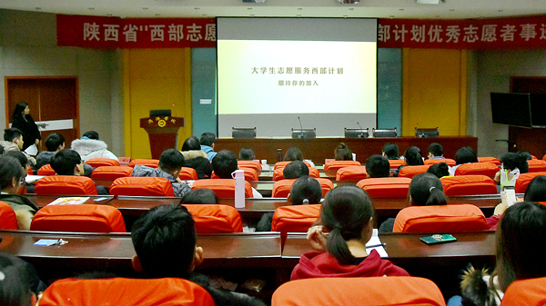 為響應(yīng)團(tuán)省委和陜西省大學(xué)生志愿服務(wù)西部計劃的號召,引導(dǎo)廣大青年積極投身基層實(shí)踐,12月18日,陜西省西部計劃優(yōu)秀志愿者事跡分享團(tuán)走進(jìn)我校,舉辦“西部志愿行 奉獻(xiàn)新時代”分享報告會。西部計劃優(yōu)秀志愿者代表陳夢穎、馬吉祿、王文超、胡倩蕓、楊坤,研究生支教代表團(tuán)成員田蕾、柏香怡參加報告會。我校各二級學(xué)院師生代表及部分志愿者聽取了報告。