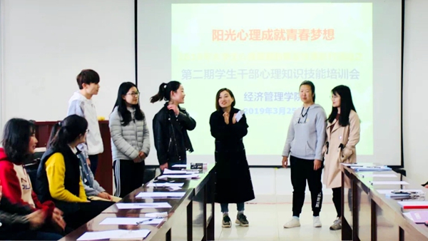 各二級學(xué)院也積極響應(yīng),陸續(xù)舉行了各自院部的心理健康教育宣傳季啟動儀式。其中,健康學(xué)院、生物學(xué)院、藝術(shù)學(xué)院、人文學(xué)院開展了以“珍愛生命 激揚(yáng)青春”為主題的宣誓簽名活動;經(jīng)管學(xué)院為學(xué)生干部開展了心理知識技能培訓(xùn);建工學(xué)院制作了精美展板向?qū)W生宣傳心理季活動;馬克思主義學(xué)院組織師生集體觀看了名為《我有一只黑狗》的心理宣傳片。