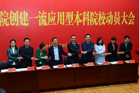 10月23日,在商洛學院創(chuàng)建一流應用型本科院校動員大會上,副校長劉寶盈代表學校與商洛市六縣一區(qū)政府、商丹園區(qū)管委會簽署《商洛市校地合作聯盟框架協(xié)議》,組建商洛市校地合作聯盟,為商洛區(qū)域經濟社會發(fā)展提供教育保障、科技支撐和智力支持。