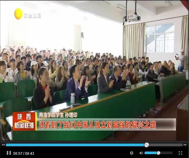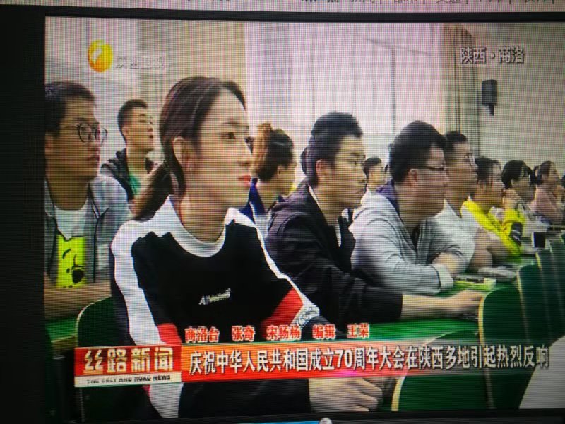 陜西電視臺(tái)《陜西新聞聯(lián)播》《絲路新聞》頻道于10月3日,商洛電視臺(tái)《商洛新聞聯(lián)播》頻道于10月1日,分別對(duì)我校師生集體收看慶祝中華人民共和國(guó)成立70周年大會(huì)、閱兵式、群眾游行直播情況進(jìn)行了報(bào)道。收看現(xiàn)場(chǎng),師生們激情澎湃,教室里不時(shí)響起熱烈掌聲,大家都為祖國(guó)的日益強(qiáng)大感到無(wú)比振奮和自豪。節(jié)目組現(xiàn)場(chǎng)采訪了我校黨委副書記彭虎軍、學(xué)生許文佳和孫增印。彭虎軍說(shuō):今天是祖國(guó)母親70歲生日,內(nèi)心非常高興,也非常激動(dòng),剛才聆聽了習(xí)近平總書記的重要講話,覺得很受鼓舞,堅(jiān)定了信心,催人奮進(jìn)。許文佳說(shuō):給我印象最深刻的是飛機(jī)的表演,我們已經(jīng)不是當(dāng)時(shí)剛開國(guó)典禮時(shí)僅存的那幾個(gè)飛機(jī),我們現(xiàn)在有高科技的軍事裝備,我們的國(guó)家也越來(lái)越強(qiáng)大,在世界上展示著大國(guó)的風(fēng)采。孫增印說(shuō):在這個(gè)特殊的日子,我想祝愿我們的祖國(guó)母親生日快樂,祝愿我們的國(guó)家更加繁榮昌盛。