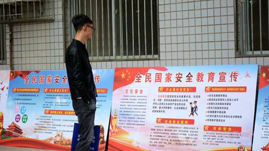 商洛學(xué)院學(xué)生認(rèn)真學(xué)習(xí)展板上的國家安全知識(shí)