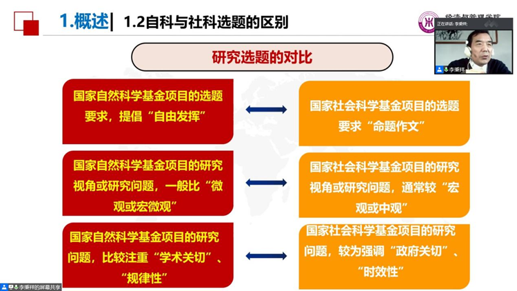 為切實(shí)做好2022年國(guó)家社會(huì)科學(xué)基金、自然科學(xué)基金項(xiàng)目申報(bào)工作,有效提升教師申請(qǐng)國(guó)家級(jí)科研項(xiàng)目的意識(shí),提高教師高層次課題申報(bào)能力及申請(qǐng)書撰寫的質(zhì)量,1月5日,經(jīng)濟(jì)管理學(xué)院以騰訊會(huì)議的方式舉辦2022年國(guó)家社科基金、自然科學(xué)基金項(xiàng)目申報(bào)經(jīng)驗(yàn)分享交流會(huì),邀請(qǐng)國(guó)家自然科學(xué)基金委同行評(píng)審專家、西安理工大學(xué)博士生導(dǎo)師李秉祥教授作經(jīng)驗(yàn)交流分享。會(huì)議由學(xué)院副院長(zhǎng)周小婷主持。學(xué)院全體教師參加會(huì)議。