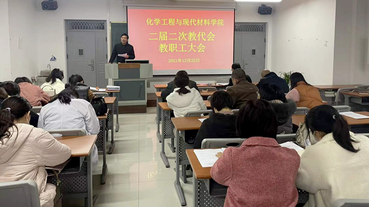 教代會在雄壯的國歌聲中開幕。周春生在會上對《化學工程與現(xiàn)代材料學院“十四五”事業(yè)發(fā)展規(guī)劃》《化學工程與現(xiàn)代材料學院2021年工作總結(jié)和2022年工作計劃》《化學工程與現(xiàn)代材料學院崗位績效工資分配辦法》向與會人員作了說明。