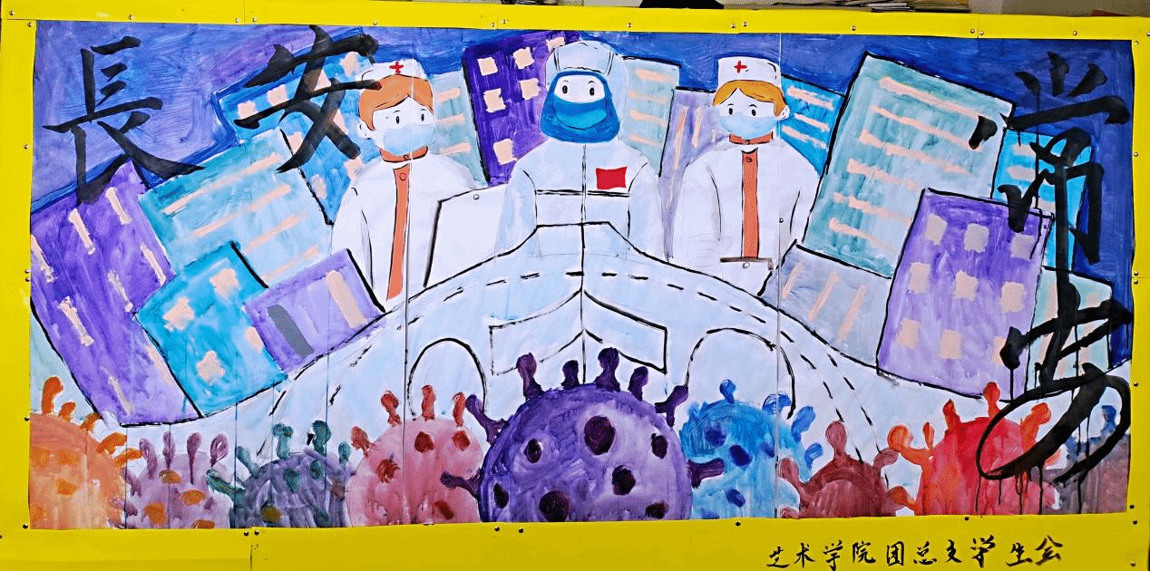 西安疫情暴發(fā)以來,校藝術學院團總支積極動員廣大團員學生踴躍投身抗擊疫情主題文藝創(chuàng)作。學院學生積極響應,創(chuàng)作了以“防疫”為主題的展板,用繪畫的方式向白衣天使致敬、為一線英雄禮贊,積極傳播正能量,為堅決打贏疫情防控阻擊戰(zhàn)增添信心與力量。