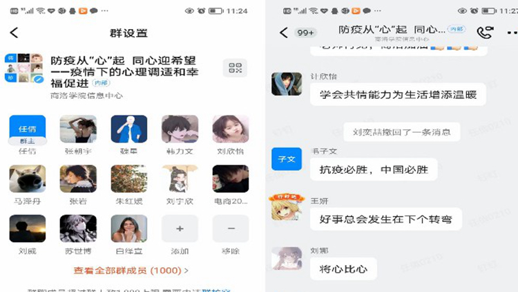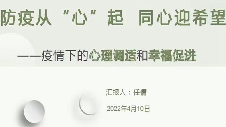 任倩老師分別從“感受樂觀的力量”、“ABCDE樂觀思維模式”、“心理調適建議”三個方面結合學生學習生活現狀,為1000余名在線師生進行了生動的心理健康知識講解。就疫情突發(fā),校園臨時封閉管理期內可能產生的焦慮多疑、惶恐不安、悲傷抑郁等心理問題提出了調試方法。通過線上互動讓大家了解“共情”,喚醒“共情”,傳遞“共情”,以積極健康的心態(tài)面對生活,共克時艱!
