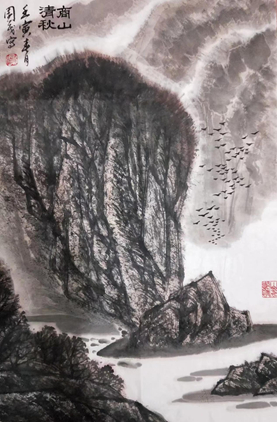 賀園茂《商山清秋》國畫
