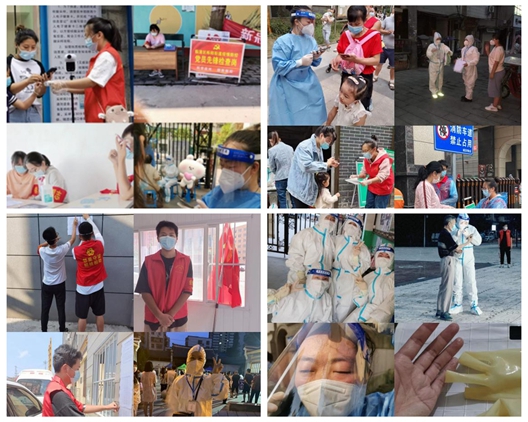 面對(duì)暑期各地疫情突發(fā)狀況,人文學(xué)院學(xué)子第一時(shí)間響應(yīng)當(dāng)?shù)卣?hào)召,變身“白墩墩”“紅融融”,協(xié)助醫(yī)護(hù)人員設(shè)置檢測(cè)場(chǎng)地、維持采樣秩序、進(jìn)行掃碼登記、發(fā)放核酸貼紙,確保核酸檢測(cè)工作有序進(jìn)行,為當(dāng)?shù)匾咔榉揽毓ぷ髫暙I(xiàn)青春力量,展現(xiàn)青年責(zé)任擔(dān)當(dāng)。