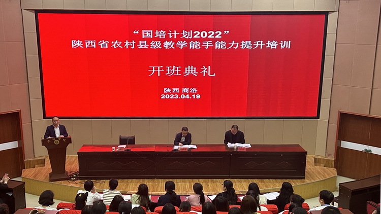 4月19日,國(guó)培計(jì)劃(2022)陜西省農(nóng)村縣級(jí)(小學(xué)語(yǔ)文、小學(xué)數(shù)學(xué))教學(xué)能手能力提升培訓(xùn)項(xiàng)目在我校開(kāi)班。繼續(xù)教育學(xué)院院長(zhǎng)付軍昌及培訓(xùn)管理團(tuán)隊(duì)相關(guān)人員出席開(kāi)班典禮。來(lái)自全省近百名小學(xué)教學(xué)能手老師參加了培訓(xùn)。開(kāi)班典禮由繼續(xù)教育學(xué)院副院長(zhǎng)任新山主持。