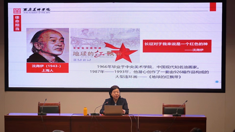 為進(jìn)一步推動(dòng)黨的二十大精神全面融入思政課教學(xué)環(huán)節(jié),持續(xù)加快思政課改革創(chuàng)新的步伐,5月12日下午,全國藝術(shù)院校思想政治理論課研究會(huì)理事、西安美術(shù)學(xué)院馬克思主義學(xué)院院長沈?qū)毶徑淌谑苎麃砦倚?,并以《藝術(shù)與思政的同頻共振推進(jìn)思政課教學(xué)創(chuàng)新》為題作專題報(bào)告。馬克思主義學(xué)院全體教師、學(xué)生代表,藝術(shù)學(xué)院部分師生參加報(bào)告會(huì)。報(bào)告會(huì)由馬克思主義學(xué)院院長蔣正治主持。