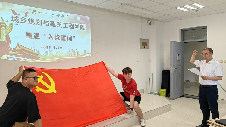 篳路藍(lán)縷創(chuàng)偉業(yè),不忘初心再啟航。為熱烈慶祝中國共產(chǎn)黨建黨102周年,推動學(xué)習(xí)貫徹習(xí)近平新時代中國特色社會主義思想主題教育走深走實(shí),“七一”前夕,城鄉(xiāng)規(guī)劃與建筑工程學(xué)院黨委舉行“重溫入黨誓詞”“學(xué)黨章”“領(lǐng)導(dǎo)班子講黨課”“開展主題黨日活動”“我為黨的生日送祝?!钡认盗袘c“七一”活動。