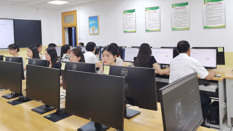 姚馨一行實(shí)地考察了我校省級心理健康教育中心,參觀了解了健康學(xué)院市級智慧心理研究與服務(wù)中心建設(shè)情況。在專業(yè)老師的指導(dǎo)下,體驗(yàn)了認(rèn)知神經(jīng)心理實(shí)驗(yàn)室、師范技能實(shí)訓(xùn)室相關(guān)心理訓(xùn)練器材設(shè)備,部分陪同人員還完成了首次“心理體檢”。