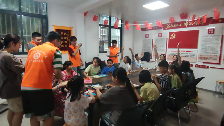 傳承文化樂開顏。在社區(qū)工作人員的協(xié)助下,實(shí)踐隊(duì)成員開展了“弘揚(yáng)傳統(tǒng)文化,增強(qiáng)文化自信”的系列活動(dòng)。首先,針對(duì)小朋友們?cè)陂喿x中的錯(cuò)誤習(xí)慣進(jìn)行糾偏改正。隨后,以“秋”為主題展開飛花令比拼,小朋友們興致盎然,紛紛說出自己所學(xué)到的詩句。最后,實(shí)踐隊(duì)成員結(jié)合“長(zhǎng)安三萬里”這部電影,向小朋友們分享了李白的生平、唐詩的流派與發(fā)展。