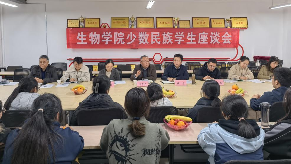 為落實(shí)“立德樹人”根本任務(wù),扎實(shí)做好少數(shù)民族學(xué)生管理服務(wù)工作,教育引導(dǎo)青年學(xué)子樹牢中華民族共同體意識(shí),11月10日,生物學(xué)院黨委召開少數(shù)民族學(xué)生座談會(huì)。學(xué)工部部長(zhǎng)李彥廣,統(tǒng)戰(zhàn)部副部長(zhǎng)于曉明出席會(huì)議。生物學(xué)院全體學(xué)工人員和24名少數(shù)民族學(xué)生參加會(huì)議。會(huì)議由生物學(xué)院黨委書記楊力主持。