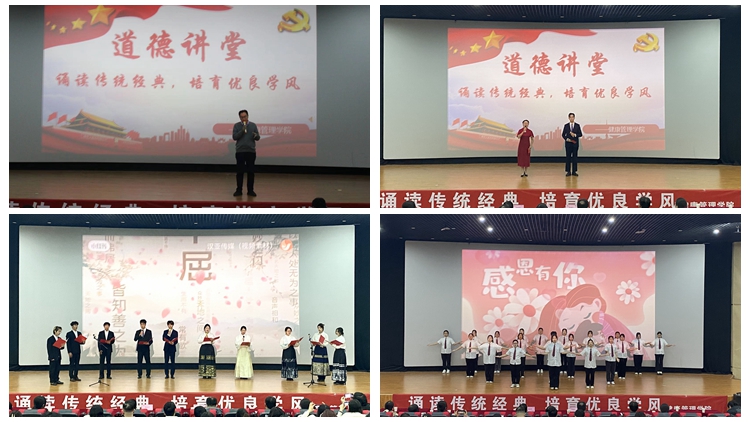 為傳承和弘揚中華優(yōu)秀傳統(tǒng)文化,鞏固學院精神文明和校園文化建設成果,12月14日,健康管理學院舉辦“誦讀傳統(tǒng)經典 培育優(yōu)良學風”道德講堂活動。校黨委宣傳部副部長史潔,健康學院院長郭耀東,學院黨委副書記·副院長楊憲華出席活動。學院全體教師及2023級全體學生參加活動。