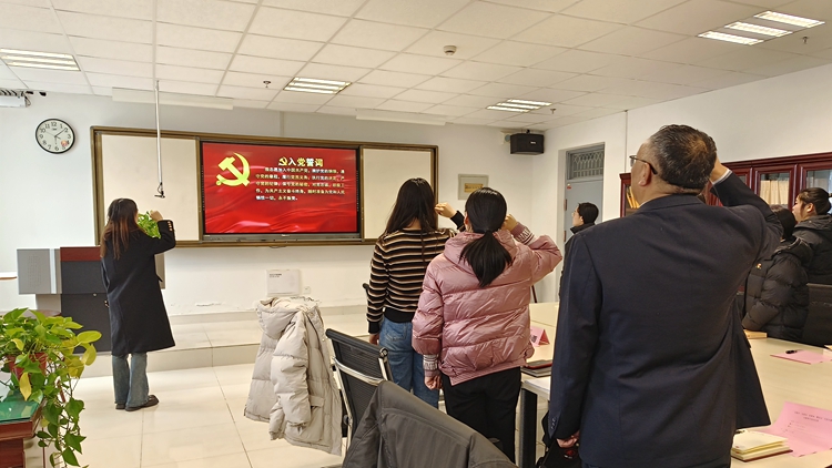 活動中,全體黨員面向黨旗,集體重溫入黨誓詞,再次表達(dá)對黨的忠誠和堅定的理想信念。隨后,支部黨員合唱《沒有共產(chǎn)黨就沒有新中國》。學(xué)生黨員張嘉蕾、郭陳樂等人領(lǐng)學(xué)了《習(xí)近平著作選讀》(第二卷)相關(guān)內(nèi)容。學(xué)生黨員韓宗華、劉晨曦等圍繞自身工作學(xué)習(xí)情況與參會黨員進(jìn)行交流,紛紛表示要堅定理想信念,提升綜合素質(zhì),充分發(fā)揮先鋒模范作用。
