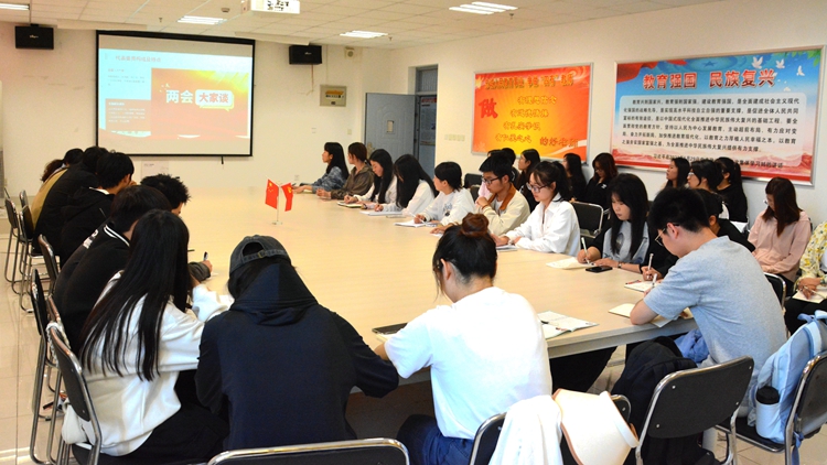 團委組織部學(xué)生干部鄭文靜從“全國兩會相關(guān)知識”“全國兩會內(nèi)容概述”“全國兩會熱點學(xué)習(xí)”三個方面領(lǐng)學(xué)了全國兩會相關(guān)內(nèi)容。學(xué)生干部閆相娟帶領(lǐng)全體人員重溫入團誓詞,再次許下不負時代、不負使命、不負未來的青春誓言。
