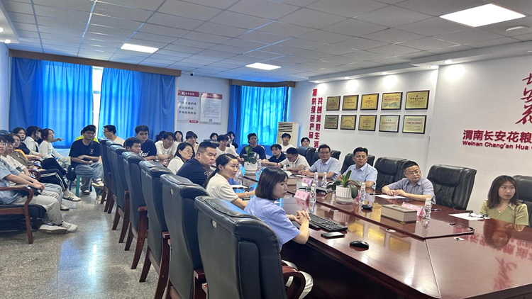 在渭南高新區(qū),長安花糧油公司總經(jīng)理李輝對師生一行表示歡迎,帶領(lǐng)師生參觀了糧油生產(chǎn)線,并召開了校企合作座談會(huì)。李輝就企業(yè)發(fā)展?fàn)顩r、人才需求進(jìn)行了介紹,楊力就生物學(xué)院專業(yè)建設(shè)情況、師資隊(duì)伍和畢業(yè)生情況進(jìn)行了介紹。雙方表示要進(jìn)一步深化合作,齊心協(xié)力推動(dòng)校企合作走深走實(shí)。