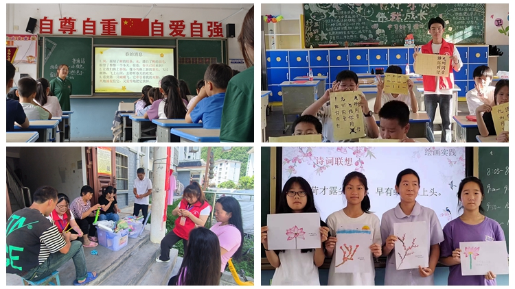 本次活動(dòng)中,人文學(xué)院“領(lǐng)航青年宣講團(tuán)”圍繞普通話知識(shí)科普、親情陪伴、素質(zhì)拓展等主題精心設(shè)計(jì)了一系列豐富多彩的科教文體活動(dòng),通過趣味游戲、詩歌朗誦、書法訓(xùn)練、手工制作、舞蹈排演等形式,讓孩子們?cè)谳p松愉快的氛圍中收獲了知識(shí)、拓展了眼界,播下了夢(mèng)想的種子?;顒?dòng)中,宣講團(tuán)還向米糧鎮(zhèn)中心小學(xué)和清泉村捐贈(zèng)圖書400余冊(cè),向參會(huì)群眾發(fā)放了由宣講團(tuán)精心設(shè)計(jì)的編織袋、手工折扇等禮品,并組織孩子們體驗(yàn)了漆扇的制作過程。