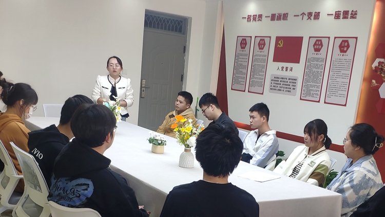 10月11日,學(xué)院學(xué)工辦主任、黨委組織員陳倩召集學(xué)院2025屆畢業(yè)生黨員、預(yù)備黨員20余人開展畢業(yè)生黨員座談會,圍繞“發(fā)揮黨員先進性 爭做就業(yè)先鋒軍”這一主題,認真?zhèn)鬟_黨中央、國務(wù)院關(guān)于“六?!薄傲€(wěn)”等方面工作的決策部署,共同學(xué)習(xí)領(lǐng)會習(xí)近平總書記關(guān)于就業(yè)工作的重要論述。與會黨員紛紛表示,將堅定不移聽黨話、跟黨走,率先就業(yè),充分發(fā)揮黨員的模范帶頭作用。