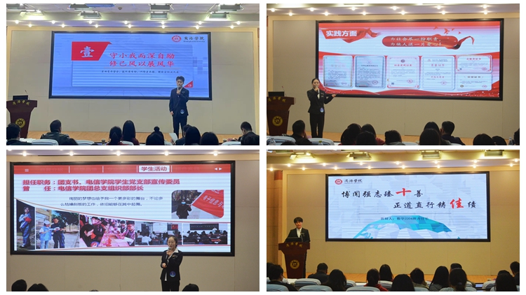 團委書記王姍、教務處副處長王欣分別對初評對象的出色表現(xiàn)給予了充分肯定,結(jié)合各個初評對象的展示內(nèi)容進行了點評,并鼓勵大家要繼續(xù)發(fā)揮榜樣作用,激勵和帶動更多同學不斷完善自我、勇于創(chuàng)新,努力成為更優(yōu)秀的自己。