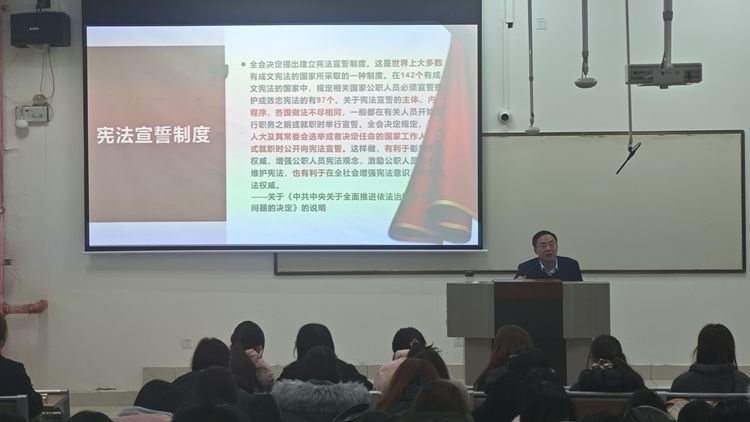 為了深入學(xué)習(xí)貫徹黨的二十屆三中全會精神,紀(jì)念第十一個國家憲法日,馬克思主義學(xué)院邀請商洛市律師協(xié)會副會長,商洛市“八五”普法講師團(tuán)講師,陜西天乾律師事務(wù)所創(chuàng)始合伙人、主任陳波為學(xué)生作了“弘揚憲法精神,培養(yǎng)法治思維”的專題報告。