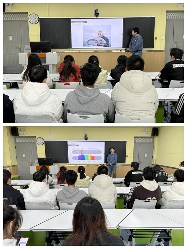 楊彪博士以人類視覺系統的基本結構為切入點,深入講解了人眼的結構、色彩感知原理、視覺信息和大腦的交互識別過程等內容,通過生動的示意圖和模型展示,讓在場同學深入直觀地了解了人類視覺形成和識別的這一神奇現象。