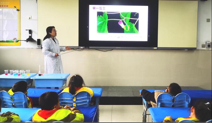 在小朋友們理解了富含花青素的紫甘藍遇酸堿會發(fā)生顏色變化后,王丹博士進一步通過視頻展示了牽牛花一天中的變化,引導孩子探究它從紫色變?yōu)榉奂t色的原因。這一過程不僅培養(yǎng)了孩子們對大自然的熱愛,還激發(fā)了他們的觀察力和探究精神,提升了科學素養(yǎng)。