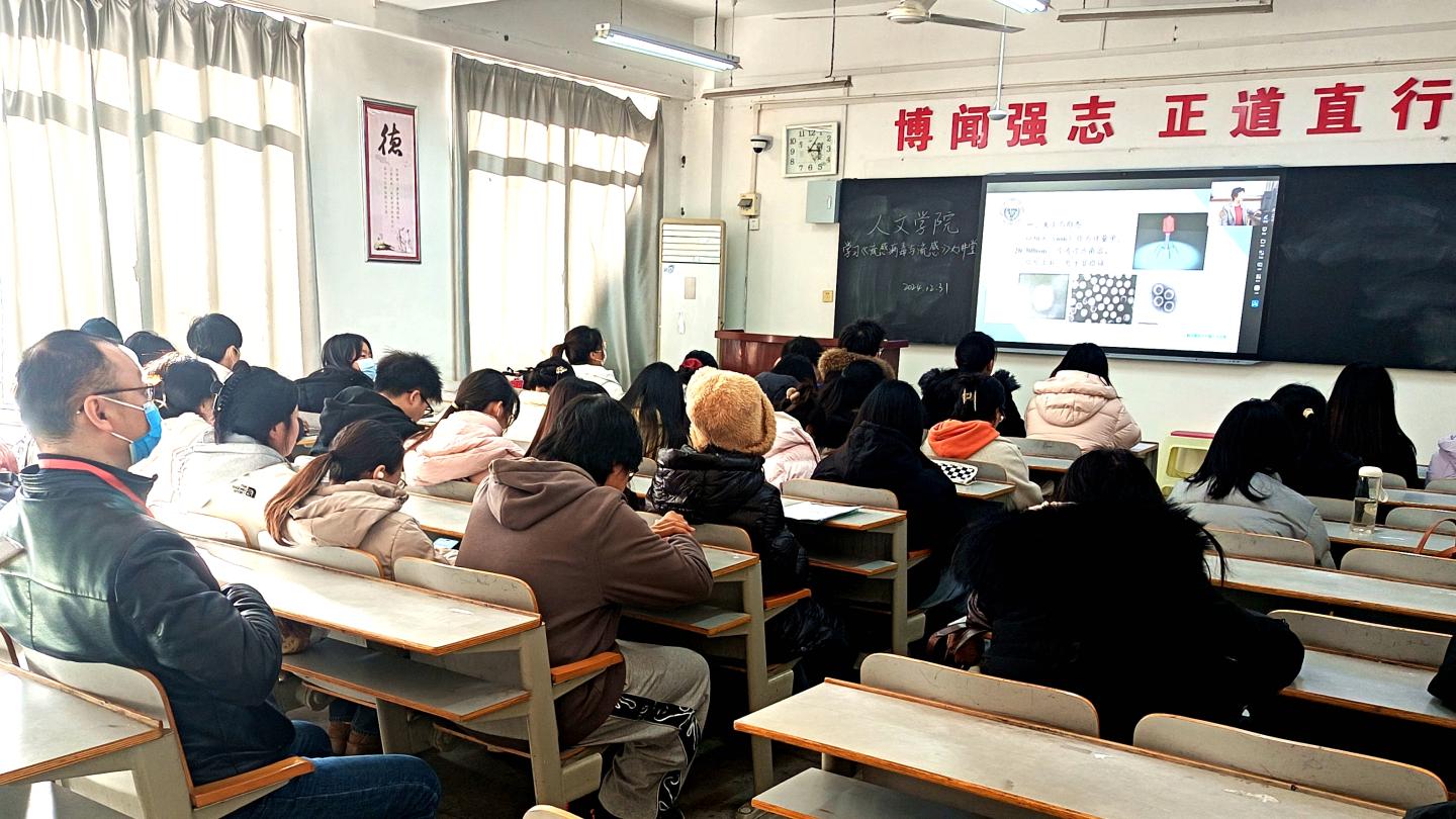 為提升學(xué)生對(duì)流感病毒和流行性感冒(以下簡(jiǎn)稱流感)的認(rèn)知,增強(qiáng)學(xué)生冬季健康防護(hù)意識(shí)和技能,12月31日下午,在校醫(yī)院羅妍醫(yī)生指導(dǎo)下,人文學(xué)院組織學(xué)生集中觀看學(xué)習(xí)陜西省微生物學(xué)會(huì)理事長(zhǎng)、西安交通大學(xué)醫(yī)學(xué)部徐紀(jì)茹教授“流感病毒與流感”直播課。人文學(xué)院黨委副書(shū)記王剛和學(xué)工人員參加學(xué)習(xí)。