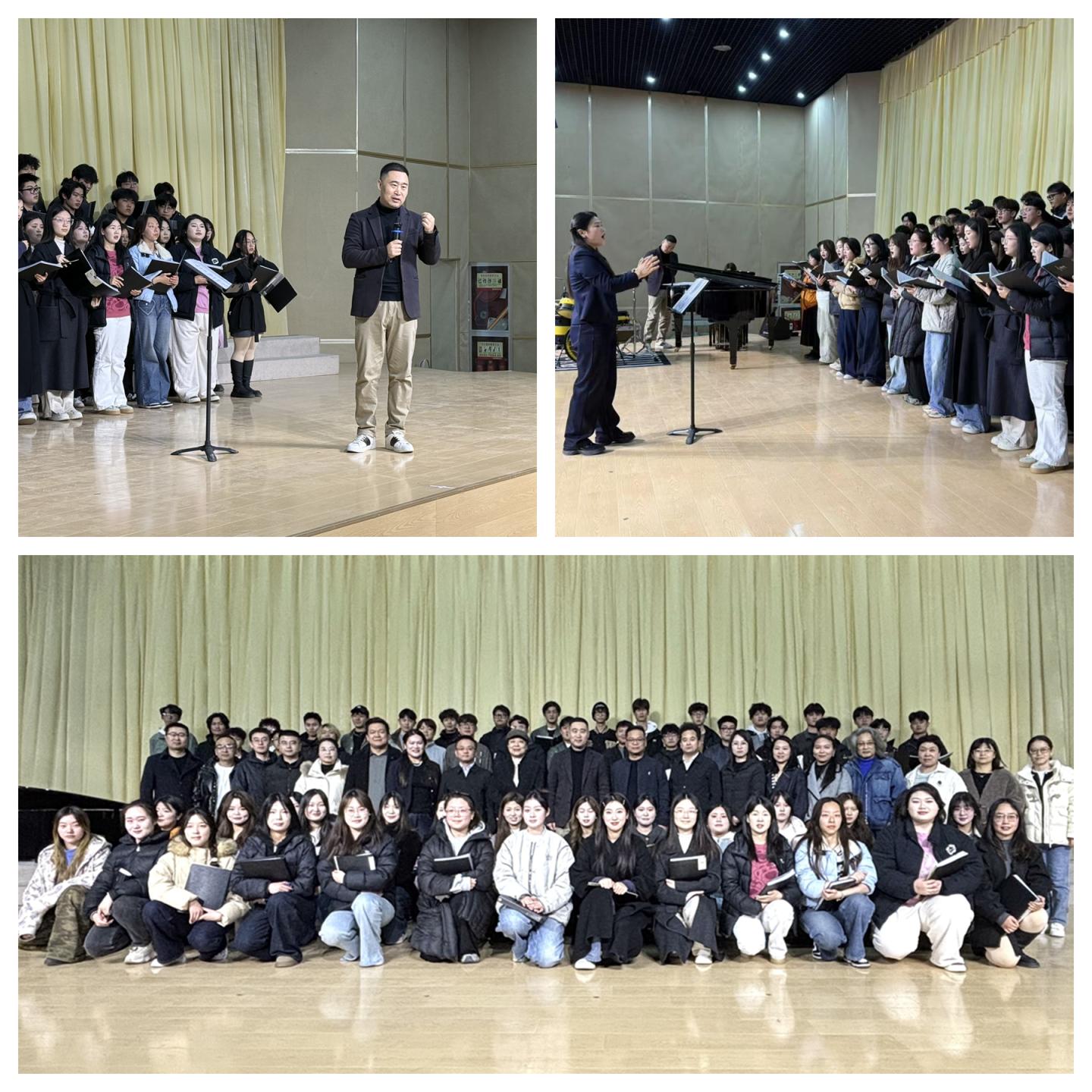 在我校音樂廳開展的師生美育合唱團(tuán)培訓(xùn)上,陜西省聲樂藝術(shù)協(xié)會副會長、陜西省合唱協(xié)會青少年合唱委員會主任、趙季平音樂藝術(shù)研究中心主任李強(qiáng),對我校師生美育合唱團(tuán)進(jìn)行技術(shù)指導(dǎo),他從發(fā)聲技巧、情感表達(dá)、合唱協(xié)作等方面分析了學(xué)生在演唱中存在的問題,提出了針對性改進(jìn)建議并現(xiàn)場示范演示。西安建筑科技大學(xué)文化藝術(shù)教育中心講師、合唱指揮王開就合唱整體技術(shù)進(jìn)行現(xiàn)場培訓(xùn)。