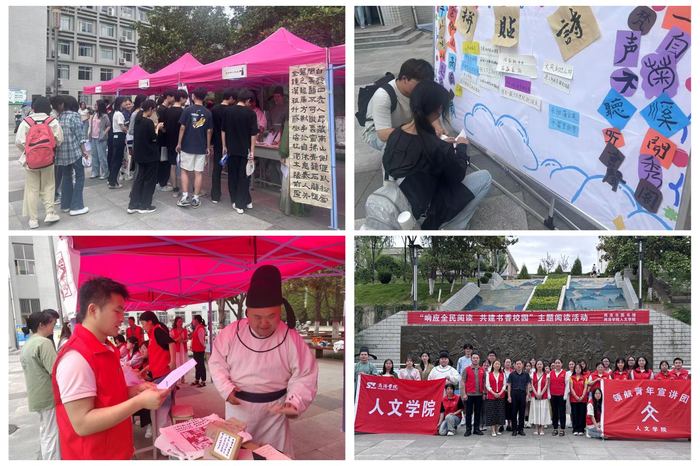 活動中,通過將知識性、趣味性與公益性相融合的方式,設置了書籍捐贈傳遞書香溫度、創(chuàng)意拼貼激發(fā)詩意靈感、知識競答碰撞思維火花、名人線索探尋地方文脈等環(huán)節(jié),以書籍捐贈、知識問答、詩句拼貼、以卡探文等互動形式,有效激發(fā)了學生的閱讀熱情,提高了學生的文化參與感,搭建了知識共享與文化傳播的橋梁與紐帶。