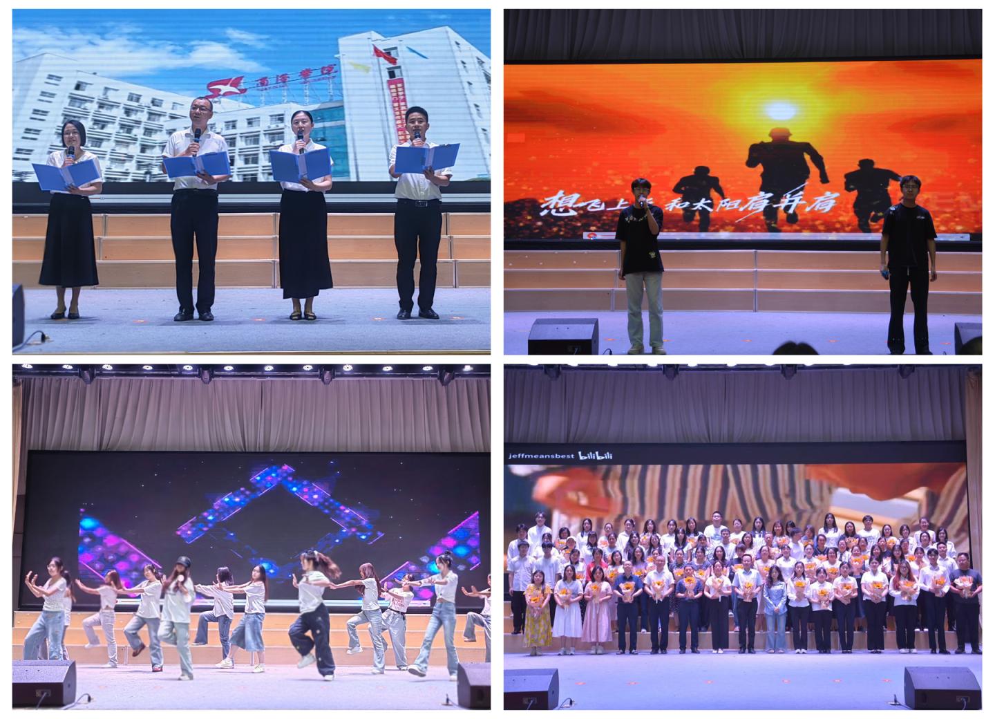 表彰大會(huì)上,王剛、趙萍君、劉玉婷、景宇四位老師通過(guò)朗誦詩(shī)歌《鶴城的風(fēng),吹過(guò)你們的夢(mèng)》,表達(dá)對(duì)畢業(yè)生的依依不舍與深情祝福。在校同學(xué)帶來(lái)的歌曲《我相信》、舞蹈《愛(ài)出發(fā)》釋放了無(wú)限的青春活力,表達(dá)了對(duì)畢業(yè)學(xué)長(zhǎng)學(xué)姐們的美好祝愿。受表彰的同學(xué)為全體教師獻(xiàn)上了鮮花,表達(dá)他們對(duì)母校和老師的祝福與感恩之情。