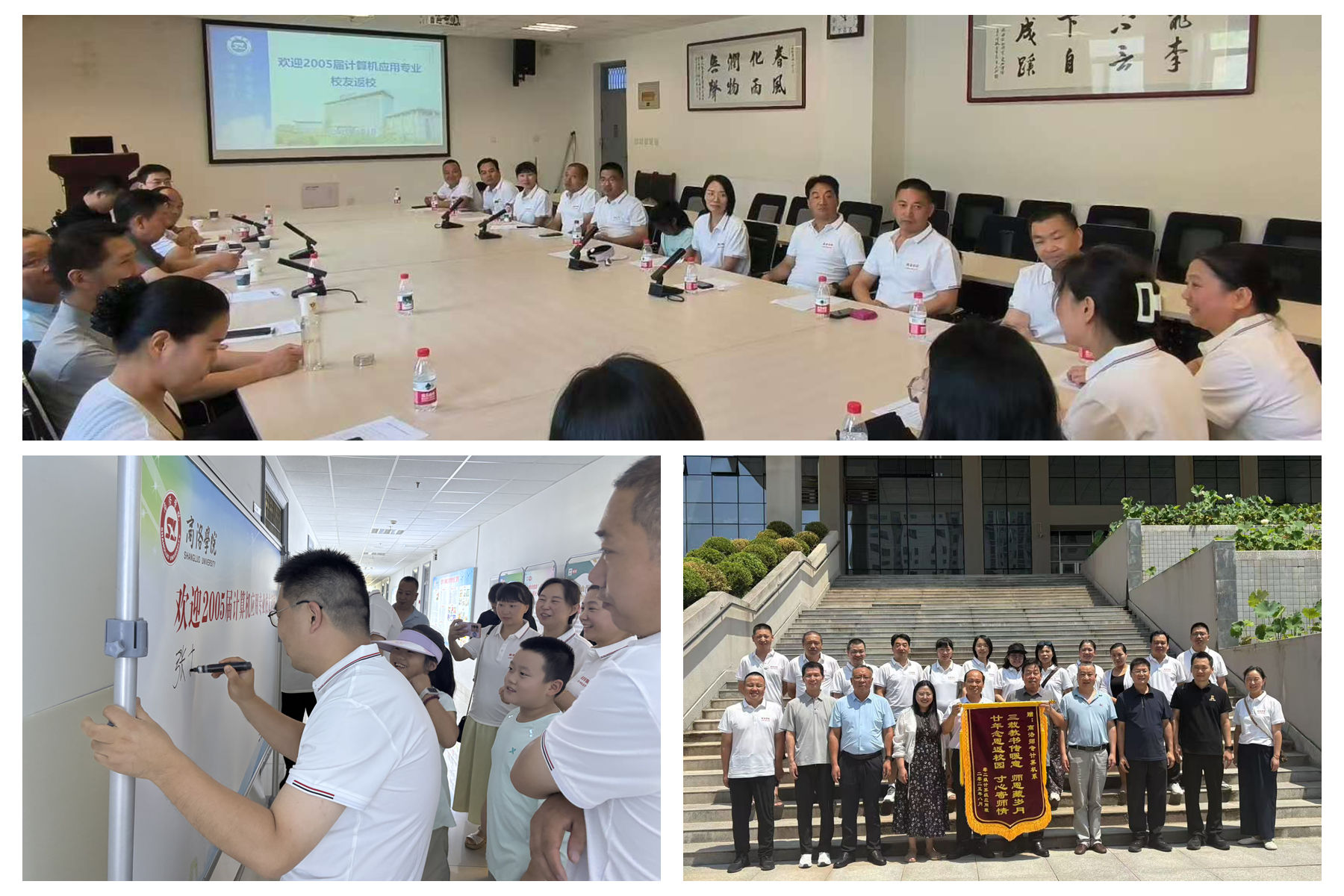 8月3日,2005屆計(jì)算機(jī)應(yīng)用專(zhuān)業(yè)13名校友返校,在闊別母校二十年后重聚一堂,共敘昔日情誼,暢談母校未來(lái)發(fā)展。校友當(dāng)年授課教師代表樊景博、劉愛(ài)軍、屈正庚、盧瓊、趙玉霞及學(xué)生處處長(zhǎng)李彥廣、國(guó)內(nèi)合作與校友工作處副處長(zhǎng)張文、數(shù)計(jì)學(xué)院黨委書(shū)記王輝及返校校友代表共計(jì)20余人參加了校友返校座談會(huì)。會(huì)議由校友昔日班主任劉愛(ài)軍老師主持。