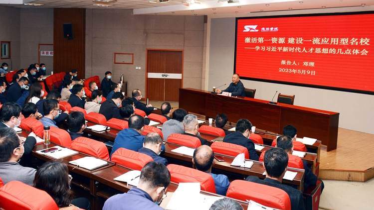 鄧理在報告中以《激活第一資源建設一流應用型名?!獙W習習近平新時代人才思想的幾點體會》為題,圍繞“正確認識是前提;遵循制度是基礎;德才兼?zhèn)?、以德為先是原則;用心尊重是關(guān)鍵;人人皆可成才、人人盡展其才是目的”等五個方面,詳細闡述了習近平總書記關(guān)于新時代人才工作的重要論述重要指示精神,針對如何激發(fā)人才創(chuàng)新活力,為我校一流學院建設提供有力的人才支撐作出了具體指導。
