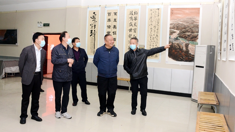 報告結(jié)束后,鄧理在張志昌、彭虎軍等的陪同下,前往圖書館藝術(shù)學院展廳參觀了我?!芭喔T魂廉潔育人”廉政文化藝術(shù)作品展。