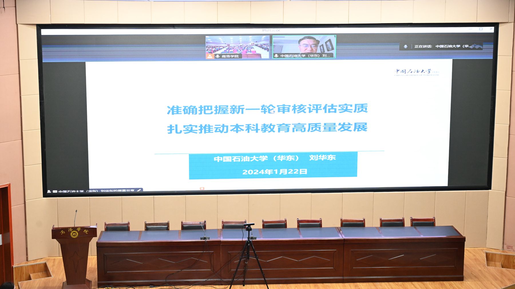 劉華東教授以《準確把握新一輪審核評估實質 扎實推動本科教育高質量發(fā)展》為題,從新一輪審核評估的新理念新要求新變化、需要重點關注的問題等方面,詳細介紹了新一輪本科教育教學審核評估工作的重大意義、基本原則和工作重點。