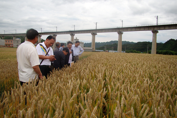 5月28日,陜西省種子管理站研究員姚撐民,西北農(nóng)林科技大學農(nóng)學院小麥育種專家高翔、謝惠民教授,商洛市種子管理站副站長賈振江、高級農(nóng)育師周龍等5位專家,對我校生物醫(yī)藥工程系高級實驗師于浩世選育的小麥新品種“商麥1619”進行了田間預審。校黨委副書記、院長張景書接待了專家一行,并對我校小麥育種工作的開展提出了具體要求