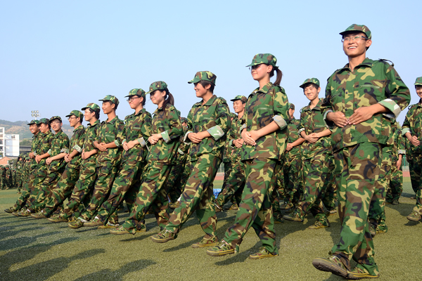 9月12日,2013級(jí)新生軍訓(xùn)已進(jìn)入第6天。來自全國(guó)24個(gè)?。ㄊ小⒆灾螀^(qū))的3000余名學(xué)生編成6個(gè)營(yíng)36個(gè)連,正在熱火朝天地進(jìn)行軍事訓(xùn)練