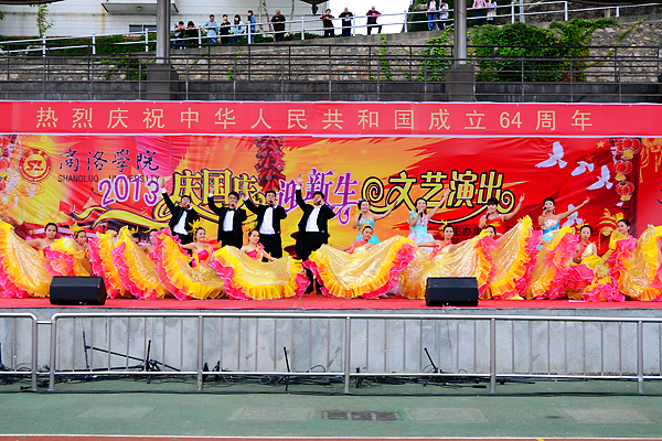 為慶祝新中國第64個生日,迎接2013級新生,9月26日下午,我校舉辦了“2013慶國慶·迎新生”大型文藝演出。西安音樂學院學院70余名師生應邀友情出演,和我校師生、商洛劇團青年歌手李淼輪番登臺獻藝,表演了民樂合奏、歌伴舞、獨唱、舞蹈、健身秧歌等19個節(jié)目。熱烈祥和的氣氛、清新高雅的藝術為校園帶來了節(jié)日的歡樂和文化的盛宴