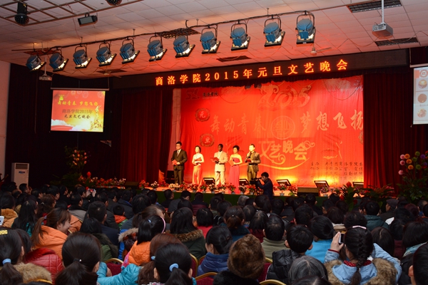 馬蹄留勝跡,羊毫譜新歌。12月30日晚,我校2015年度元旦文藝晚會在大學(xué)生活動(dòng)中心隆重舉行。商洛市副市長劉榮賢,校黨委書記張景書、校長劉建林、黨委副書記左曉民、紀(jì)委書記王思懷、副校長魏書堂,商洛市教育局局長胡棟梁、共青團(tuán)商洛市委書記曹艷萍、商州區(qū)政府副區(qū)長楊俊芬,商洛供電局、中國銀行商洛分行、中國建設(shè)銀行商洛分行、中國郵政商洛分公司、中國移動(dòng)商洛分公司、中國聯(lián)通商洛分公司、中國電信商洛分公司、商洛市劇團(tuán)、中國移動(dòng)商州分公司有關(guān)領(lǐng)導(dǎo)同師生們一起觀看了演出